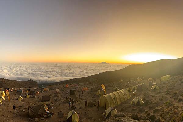 After breakfast, we leave Barranco and continue on a steep ridge up the Barranco Wall to the Karanga Valley and the junction which connects with the Mweka Trail. We continue up to the Barafu Camp. You have completed the South Circuit, which offers views of the summit from many different angles. Here we make camp, rest, enjoy dinner, and prepare for the summit day.