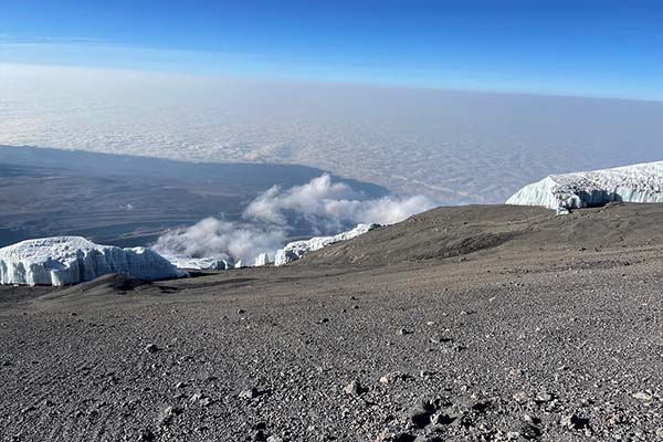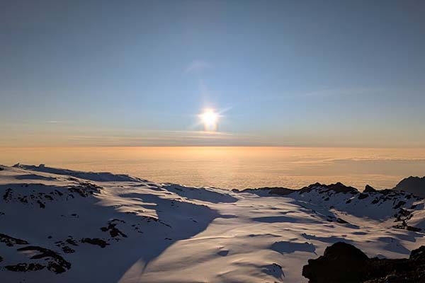 Very early in the morning (midnight to 2 am), we continue our way to the summit between the Rebmann and Ratzel glaciers. You head in a northwesterly direction and ascend through heavy scree towards Stella Point on the crater rim. This is the most mentally and physically challenging portion of the trek. At Stella Point you will stop for a short rest and will be rewarded with the most magnificent sunrise you are ever likely to see. Faster hikers may view the sunrise from the summit.