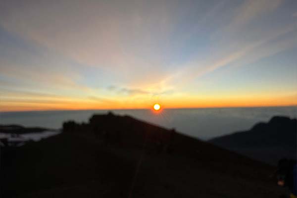 The beginning of this climb is done in the dark and requires headlamps or flashlights. It will be very cold until you start descending, so you will need all of your warm layers. This is by far the most difficult part of the trek with many switchbacks. Going slowly “pole pole” and an optimistic attitude will get you there!