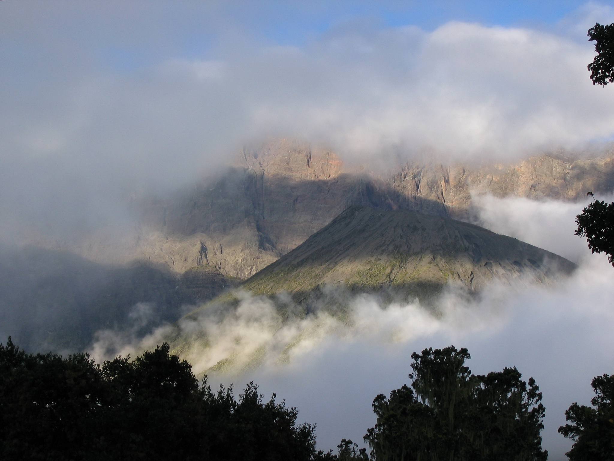 From the summit, we begin our descent by continuing straight down to the Miriakamba hut.